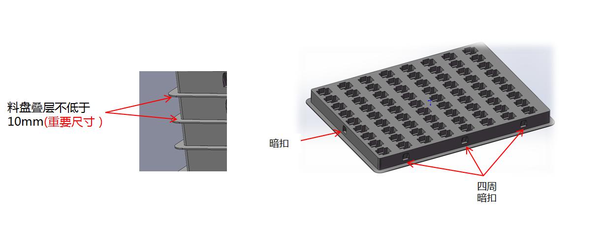 1、吸塑盤要求來料精度一致性高,高強(qiáng)度抗重復(fù)使用不易變形(如下圖)。