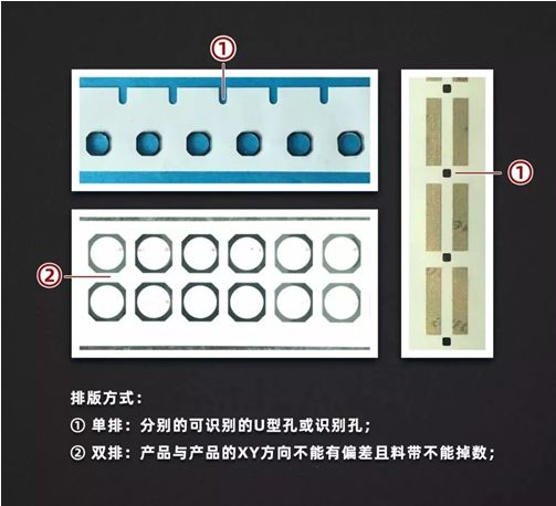 9、輔料要求:可以允許出現(xiàn)接料頭,可以允許部分缺料,對產(chǎn)品與產(chǎn)品之間輔料間距最小可以做到0.5mm且對產(chǎn)品與產(chǎn)品、產(chǎn)品到邊的距離要求一般,可支持多排、單排、多方向的輔料排版。
