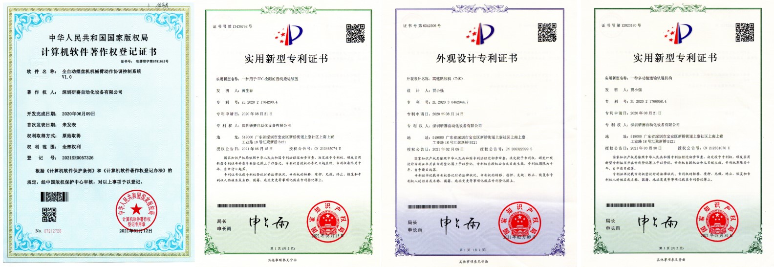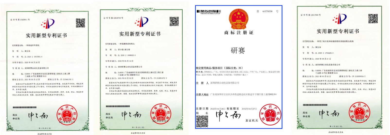 深圳市研賽自動(dòng)化設(shè)備有限公司自成立以來(lái), 一直秉持“以研為本、敢賽為先”、的核心價(jià)值觀,不忘初心,始終如一地踐行企業(yè)社會(huì)責(zé)任擔(dān)當(dāng),為合作伙伴持續(xù)提供高精度、高品質(zhì)、高效率的電子輔料貼裝線體。作為電子輔料貼裝線體倡導(dǎo)者,電子輔料貼裝線體工藝的建設(shè)者,深圳市研賽自動(dòng)化設(shè)備有限公司已經(jīng)擁有20多項(xiàng)項(xiàng)技術(shù)專(zhuān)利及軟件著作、30+行業(yè)獎(jiǎng)項(xiàng)及資質(zhì)認(rèn)證,具備行業(yè)領(lǐng)先的核心技術(shù)競(jìng)爭(zhēng)力。此外,深圳市研賽自動(dòng)化設(shè)備有限公司作為國(guó)內(nèi)領(lǐng)先鋰電池行業(yè)后起之秀,研賽與德賽、冠宇等知名鋰電企業(yè)建立合作關(guān)系,為客戶提供鋰電 PACK線、鋰電芯設(shè)備,提升客戶整體自動(dòng)化能力。目前產(chǎn)品主要有:鋰電PACK線、AGV對(duì)接上料機(jī)、邊電壓測(cè)試機(jī)、切 極耳邊電壓設(shè)備、測(cè)量一體機(jī)、正壓測(cè)漏機(jī)等。
