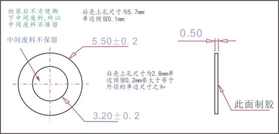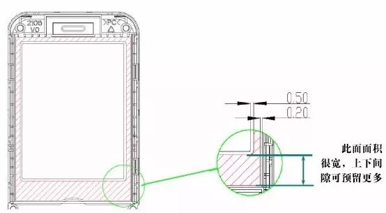 由于泡棉較厚、較軟,為防止粘貼后擠壓變形所造成的泡棉外露,面積較大的LCD泡棉單邊預留0.2mm,框內間隙要留0.5mm以上,面積較小的攝像頭泡棉、喇叭泡棉、馬達泡棉單邊預留0.1mm以上,中間預留0.2mm以上。