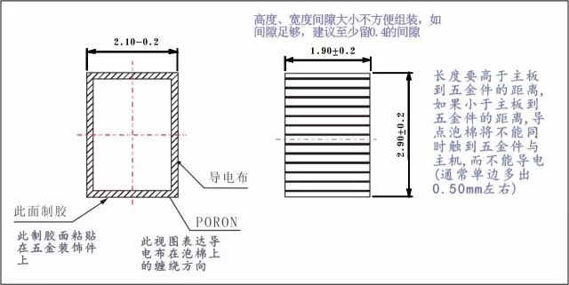 ② 導電泡棉的單面制膠范圍不能大于制膠面,為防止膠將整個面與五金件絕緣;