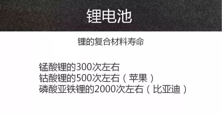 錳酸鋰的300次左右、鈷酸鋰的500次左右、磷酸亞鐵鋰的2000次左右。鈷酸鋰(LCO)一直是高端移動設(shè)備鋰電池的主流正極材料。受到蘋果IPhone和IPad的強(qiáng)勁需求拉動,LCO的最近幾年的年產(chǎn)量一直穩(wěn)步增加仍然高居正極材料頭把交椅。而比亞迪電動車使用的就是磷酸亞鐵鋰,誰讓人家有錢呢。