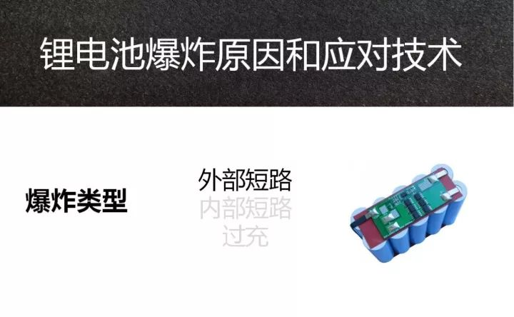 爆炸類型分析電池芯爆炸的類形可歸納為外部短路、內(nèi)部短路、及過充三種。