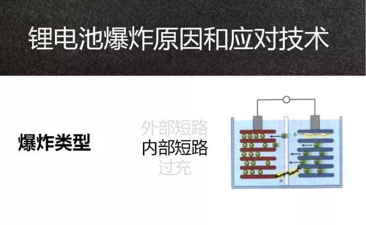 2.內(nèi)部短路主要是因為銅箔與鋁箔的毛刺穿破隔膜,或是鋰原子的樹枝狀結(jié)晶穿破膈膜所造成。由于過充,負(fù)極的儲存格已經(jīng)裝滿了鋰原子,后續(xù)的鋰金屬會堆積于負(fù)極材料表面。這些鋰原子會由負(fù)極表面往鋰離子來的方向長出樹枝狀結(jié)晶。這些鋰金屬結(jié)晶會穿過隔膜紙,使正負(fù)極短路。有時在短路發(fā)生前電池就先爆炸,這是因為在過充過程,電解液等材料會裂解產(chǎn)生氣體,使得電池外殼或壓力閥鼓漲破裂,讓氧氣進(jìn)去與堆積在負(fù)極表面的鋰原子反應(yīng),進(jìn)而爆炸。