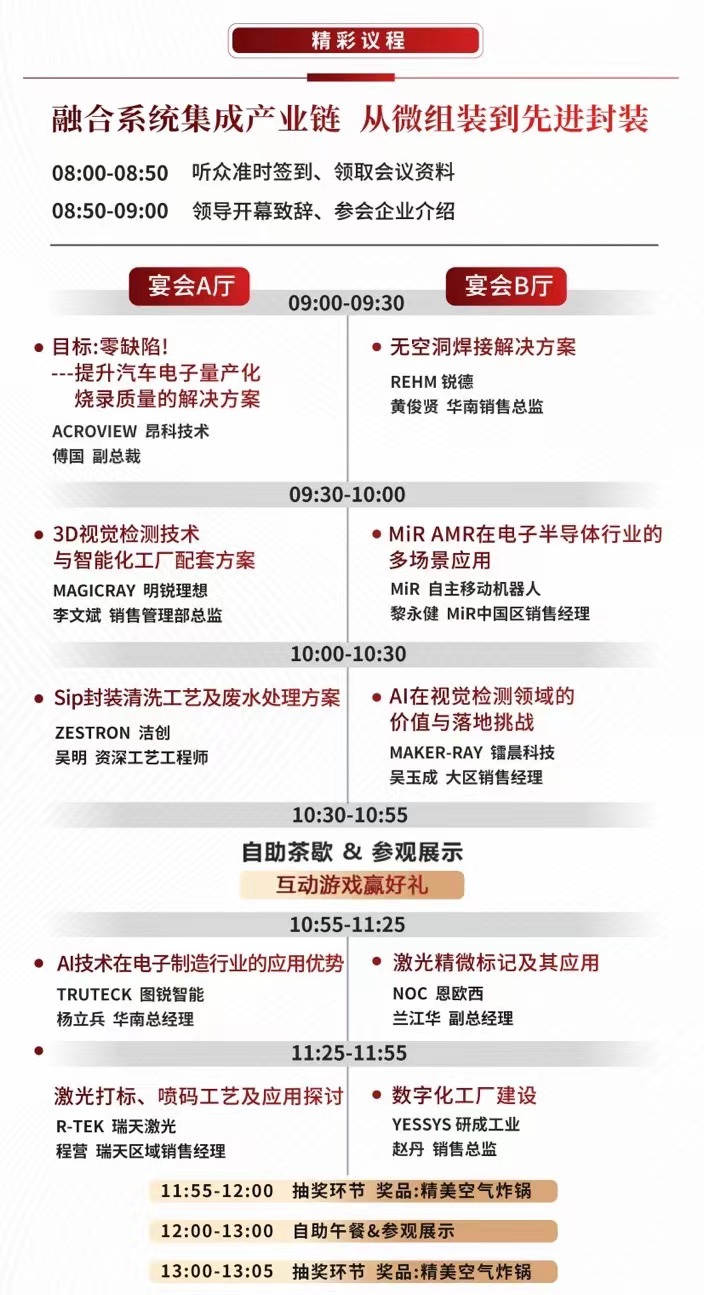 重慶電子行業(yè)智能制造第96屆 #CEIA電子智造 高峰論壇 ? 重慶站將于5月19日盛大召開,開啟雙會場陣容,聚焦封裝清洗、燒錄、激光、自動化領(lǐng)域,郵電大學(xué)、創(chuàng)維、海康威視、西南集成電路眾多專家大咖領(lǐng)銜開講,不容錯過。